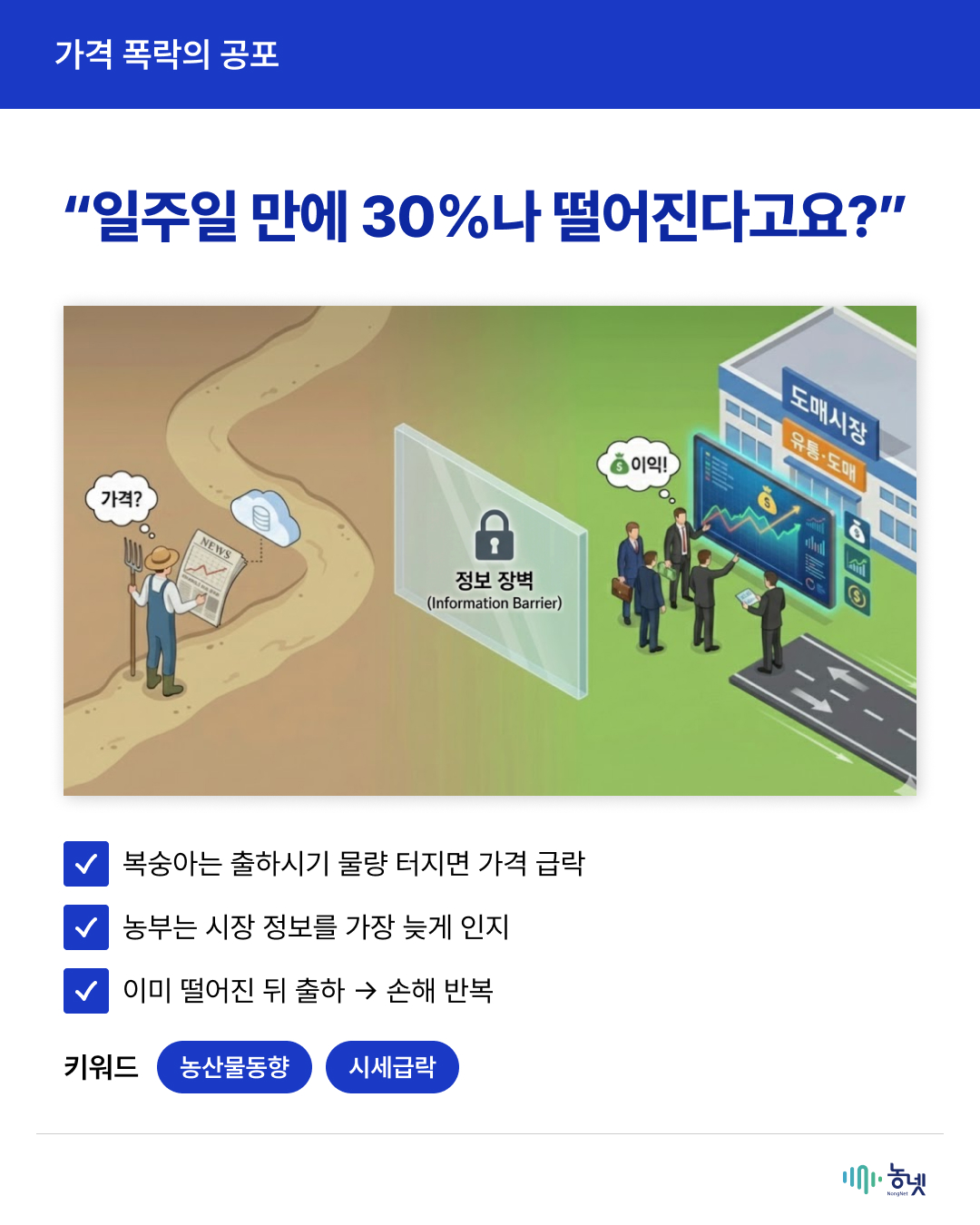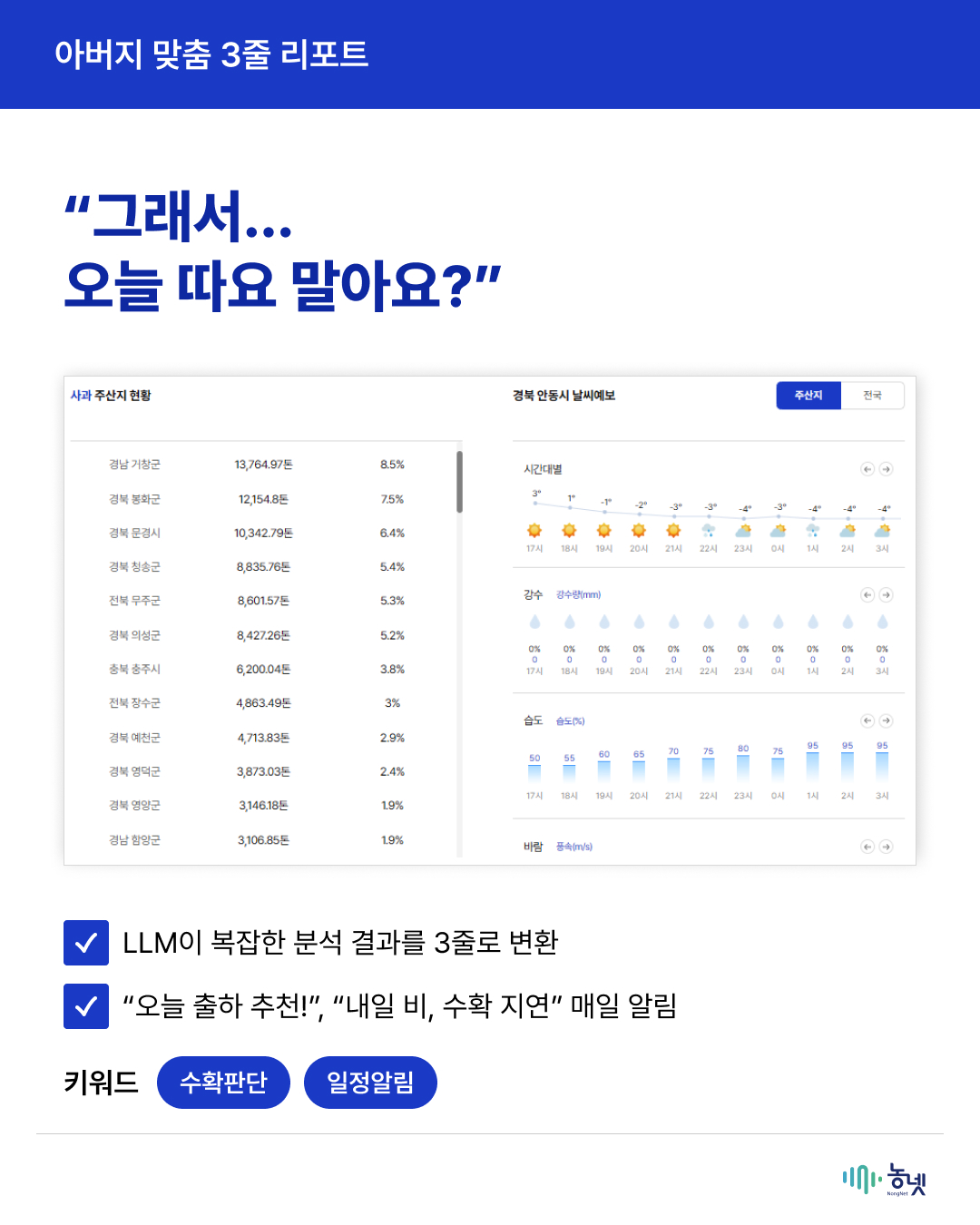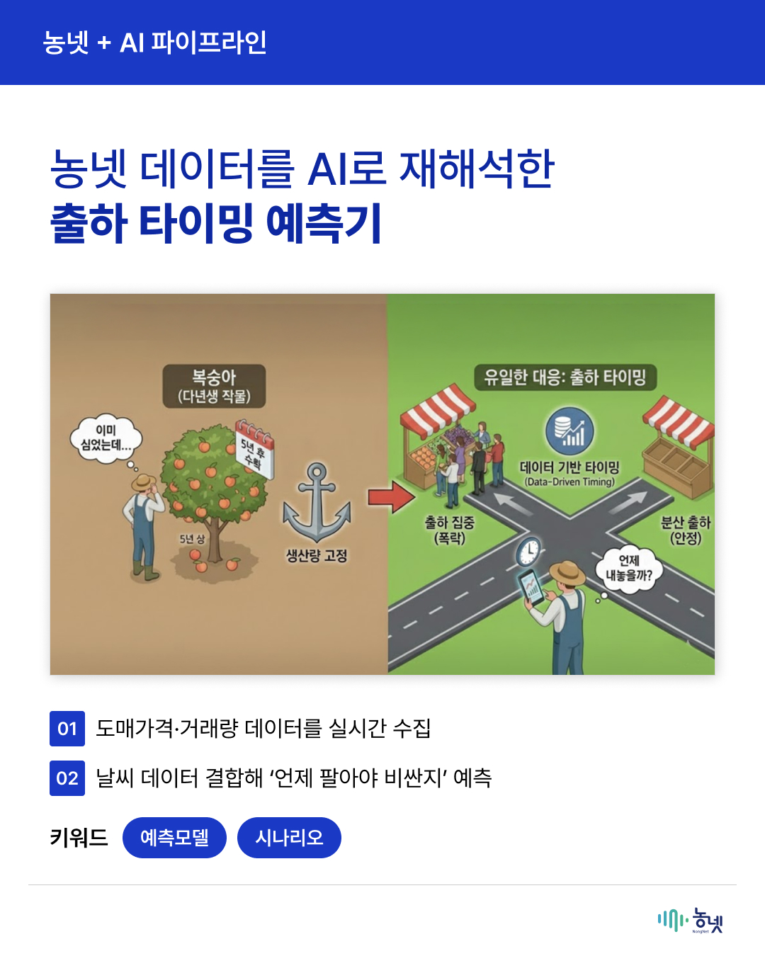 공지사항 새로운 농넷 소식을 만나보세요! [2025년 농넷 활용사례 수기 공모전 우수상(생산분야) 수상작] 복숭아 농장 AI 비서 구축기 관리자 2025-12-31 16:35 조회수 217 [해당 카드뉴스는 2025년 농넷 활용사례 수기 공모전 수상작을 활용해 재가공하였습니다.] 이전글[2025년 농넷 활용사례 수기 공모전 대상 수상작] 데이터로 빛은 술이 세계를 사로잡은 비결 목록 [2025년 농넷 활용사례 수기 공모전 우수상(유통분야) 수상작] 원가·재고·타이밍까지 잡은 사장님의 농넷 활용법다음글